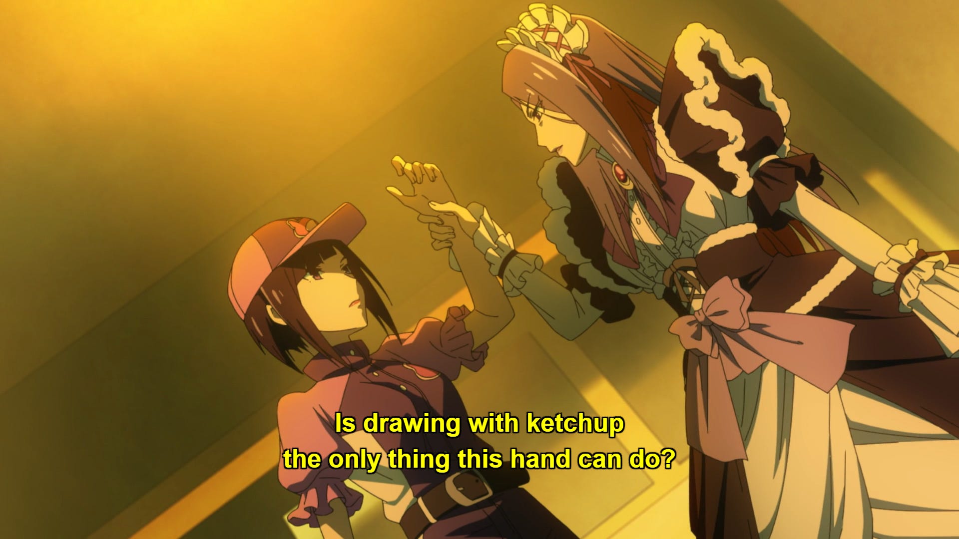 The aforementioned Yumechi (a cynical twintailed cutie-pie) and Shiipon (a frank gal in heavy makeup) are ordinary working girls who approach their violent lifestyle with a certain experienced, jaded matter-of-factness. That they’re typical well-trod anime types, and that all this is just work for them, grounds the absurdity of what they’re doing.