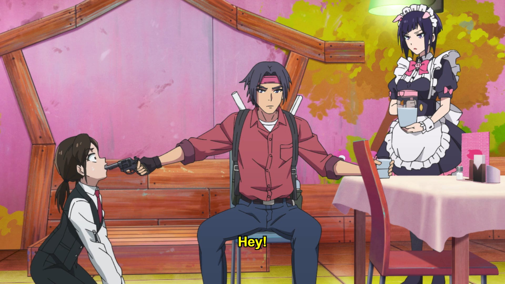 But the star supporting character and everybody’s clear favorite has got to be Ranko Mannen, a 36-year-old maid who’s spent 15 years in jail after taking the fall for a certain incident. Ranko is stone-faced and delivers her “moe moe kyun”s in full monotone; she is devoted to her cafe, awful at the maid stuff, and a pro at killing.