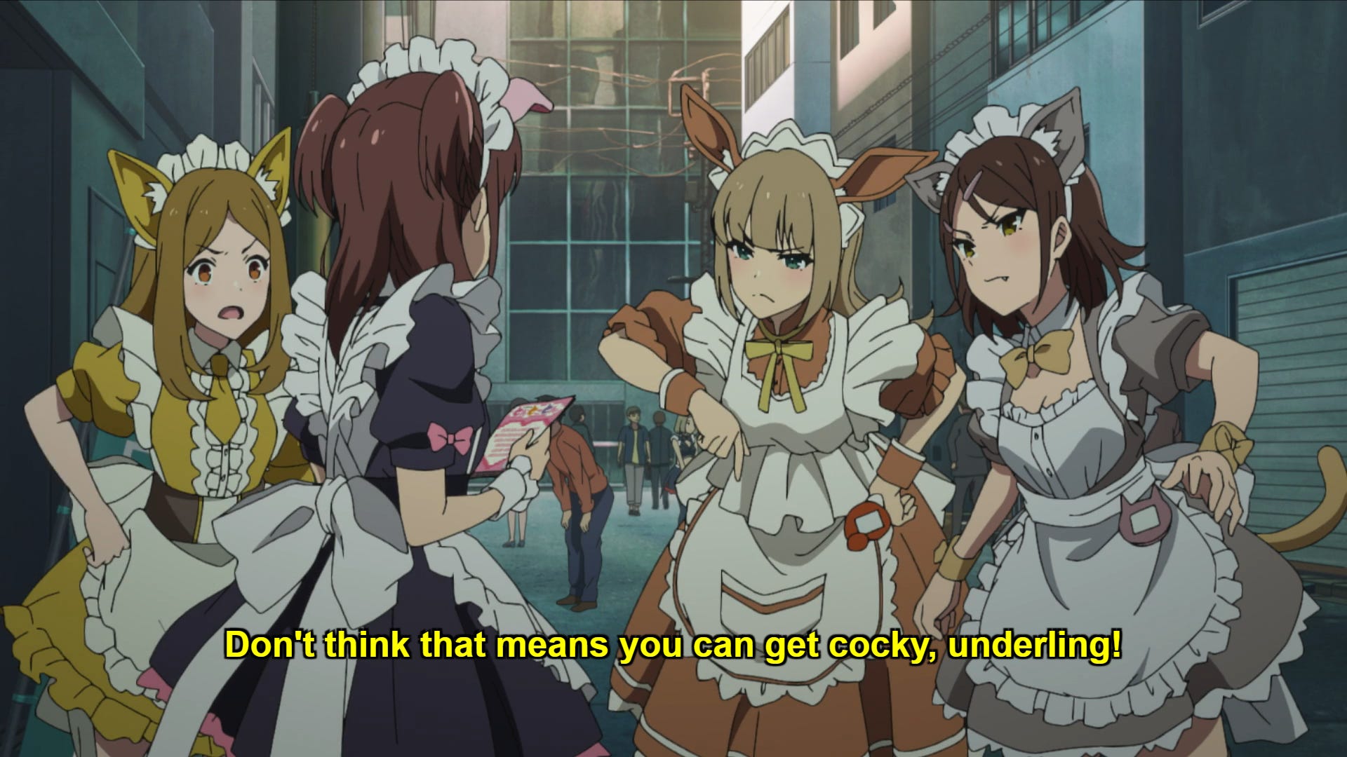 This is a joke you really have to commit to, or it falls apart. Akiba Maid War is set in a world where it’s universally understood and accepted by everyone that maid cafes are mafia outposts.