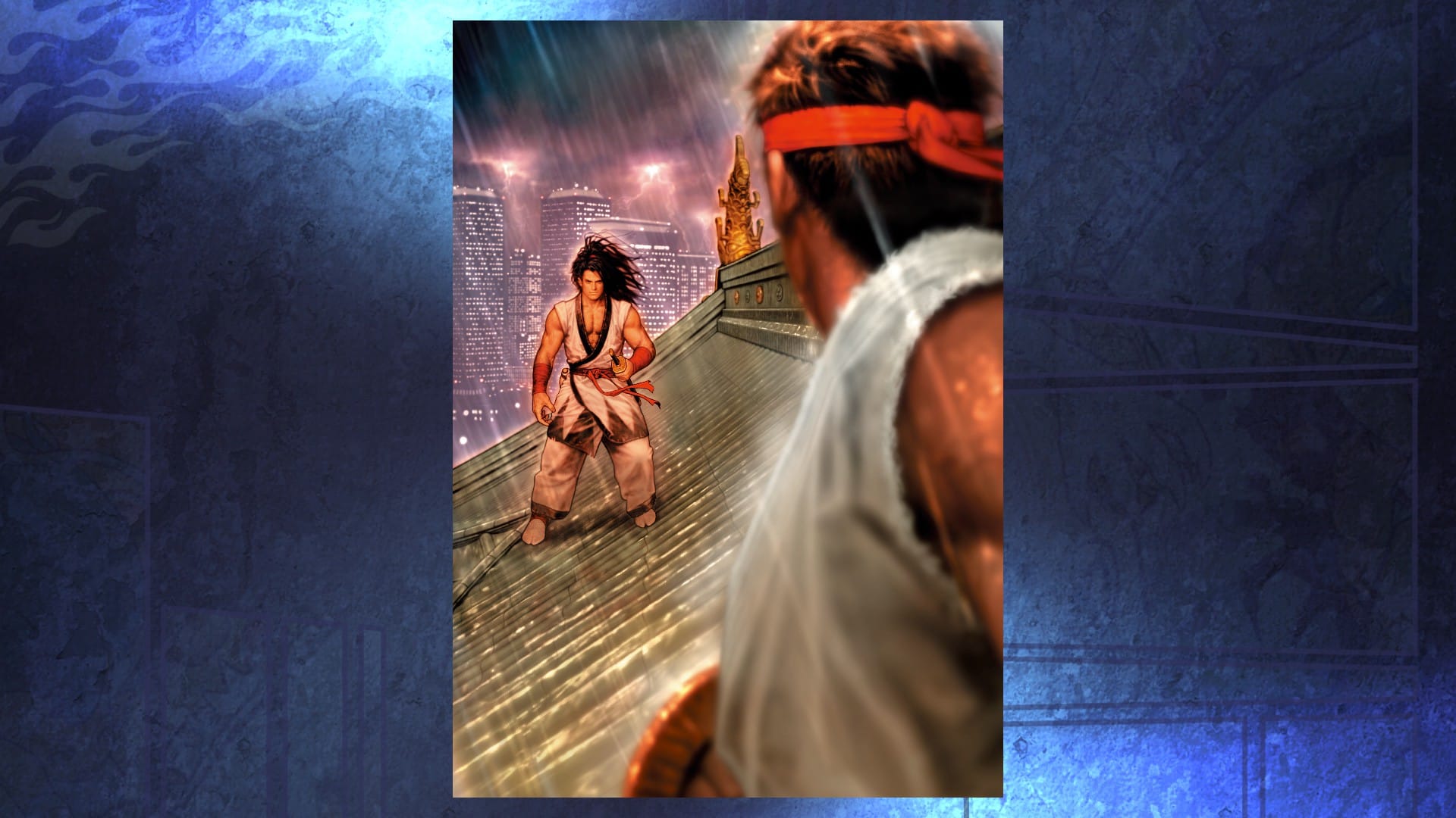 CVS1 is also the most “Y2K”-looking game I think I’ve ever played. If you didn't live through it and you’re wondering what Y2K aesthetic was like, it’s literally all in this one video game. Weird curved bars, Impact and computer font, flying arrows everywhere. Synthesized announcer voices. Monochrome on sky blues. It’s also got some really innovative background art and stage intros that are worth seeing for themselves. CVS2 tops it with its overall slick look, cool music, and unforgettable radio DJ voice, but there’s something about the experiments in this old game, like when the garbage fire in an alley magnifies a fighter’s shadow to cover the side of a ghetto apartment building.