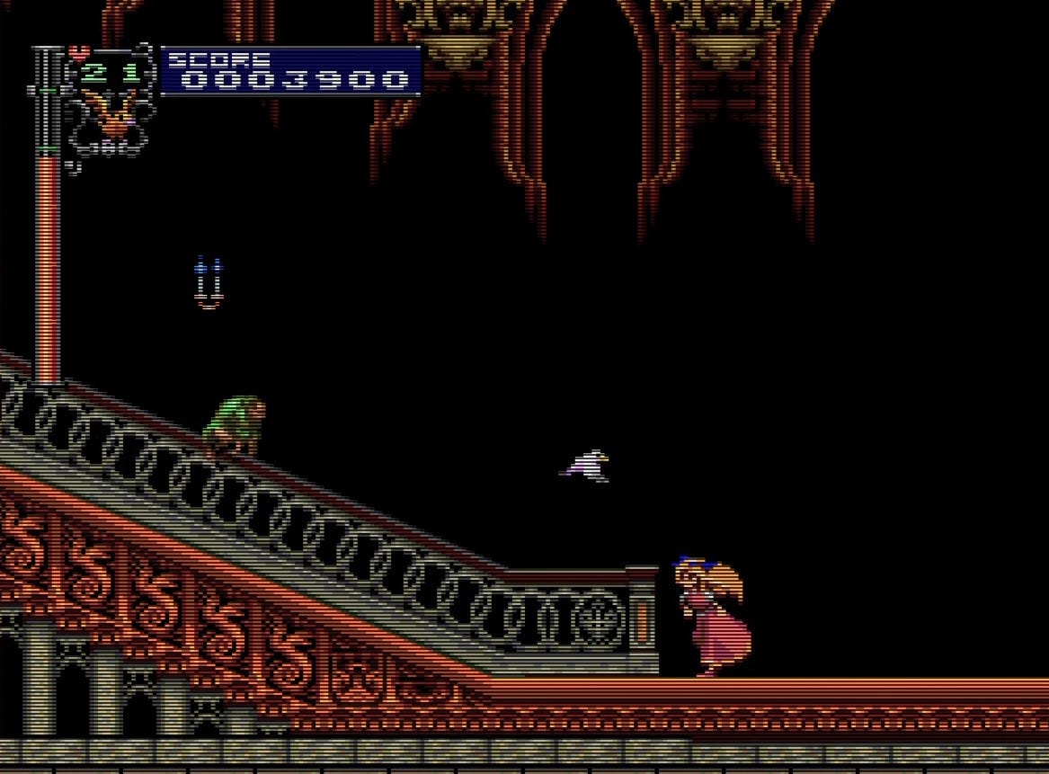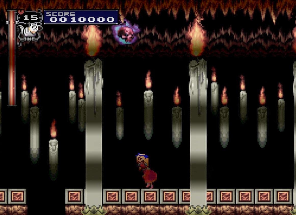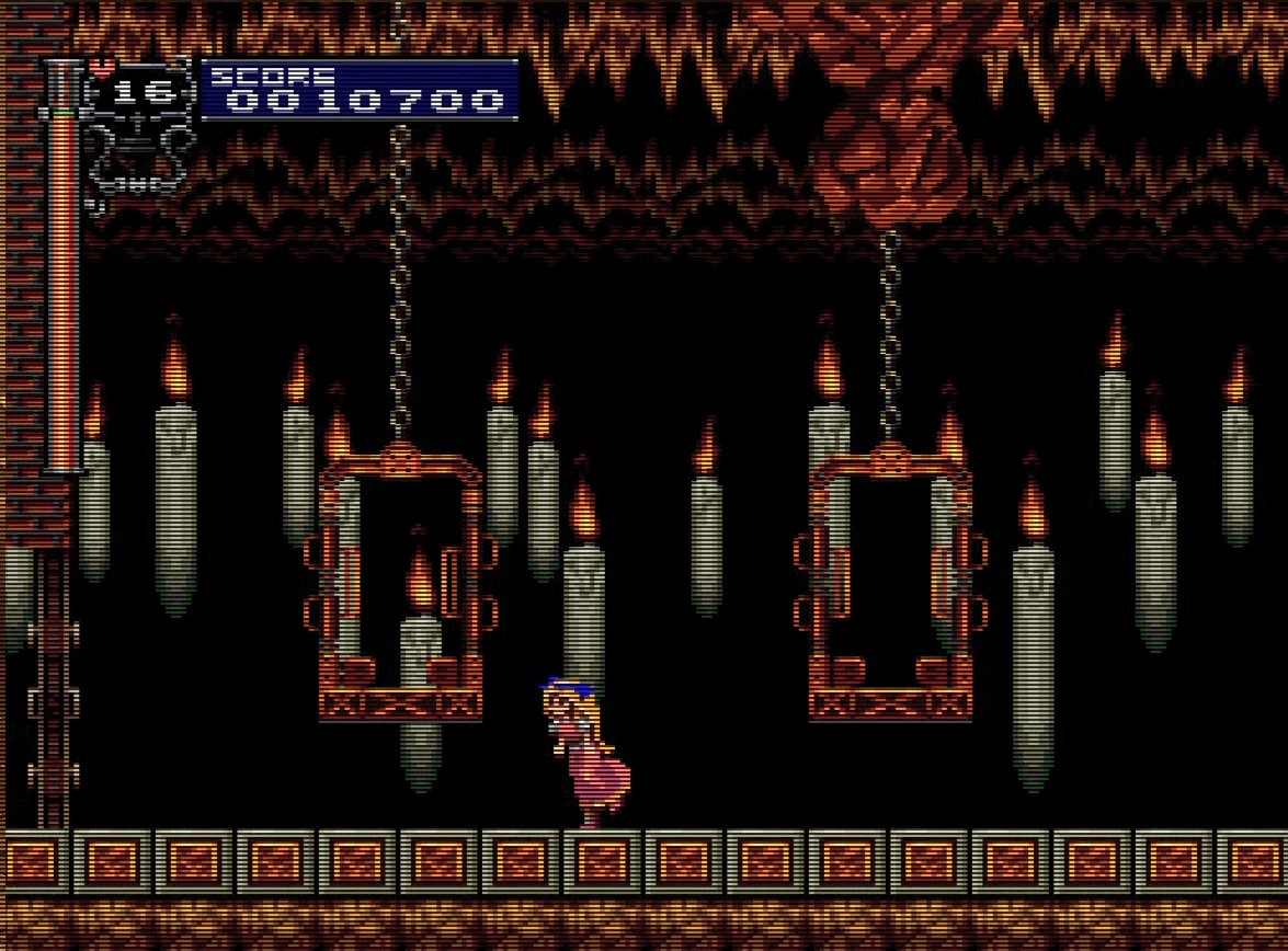 A delightful touch here is that you can actually knock out the huge candles that foreground the stage, and get items. After all, if you can break tiny candles, certainly the same thing works on gigantic candles.