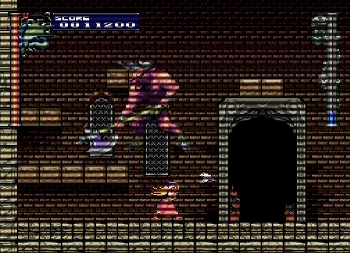 The minotaur will charge forward, which is scary, until you start hitting him, which bumps him back. Since Maria can maintain steady fire with the birds and the dragon, she’s in no danger against this boss. Cross under his feet when he jumps high and he can’t touch you.