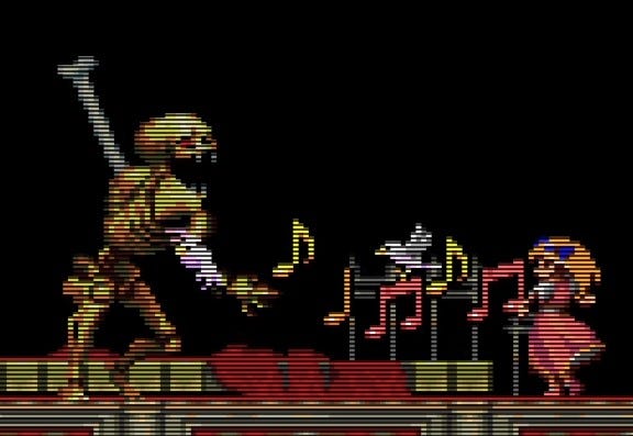 One of the things I love about Castlevania is its totally free-form, wild approach to remixing classical Hollywood horror tropes. For example this room, where you charge through a beautiful church while being attacked by skeletons who are swinging at you from the sky on bone chains, like Tarzan or Spider-Man. It’s oh so simple, but one of my favorite moments in the game.