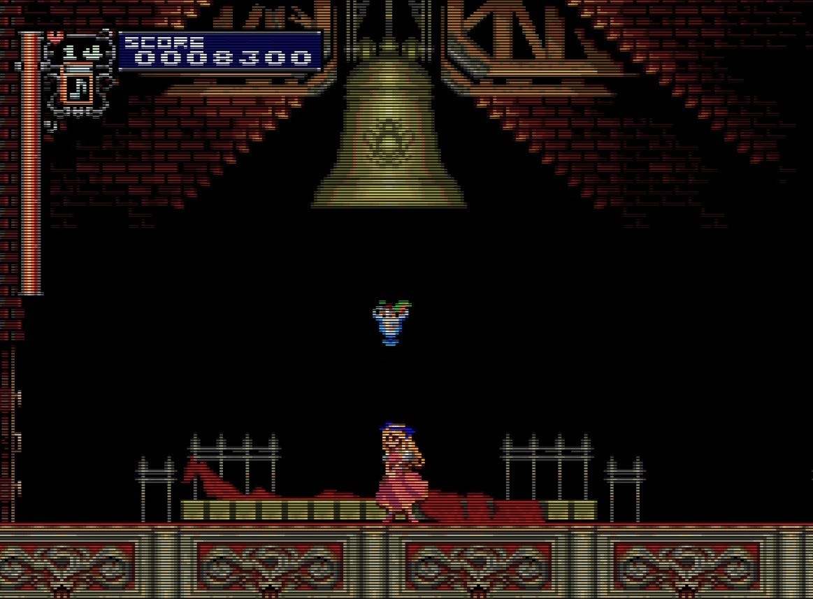 I adore the moment when you defeat this guy where the bell rings and a health item— for Maria a fancy parfait— falls out of it. The Dracula video game should not take itself too seriously.