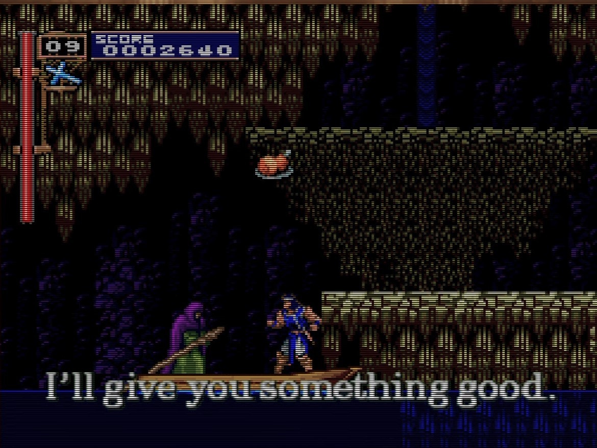 Get back on the boat and the ferryman will give you “something good”, in this case a health item. Do it again and he’ll give you a key (which you need to open the boss door). Bother the poor man one more time and he’ll tell you “Come no more!” and hand you an invincibility potion.