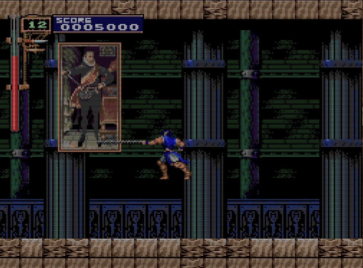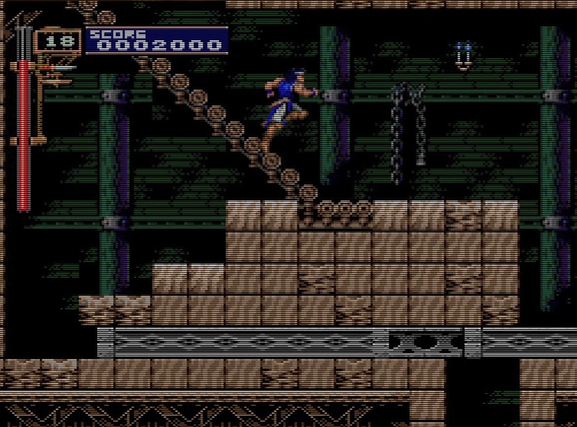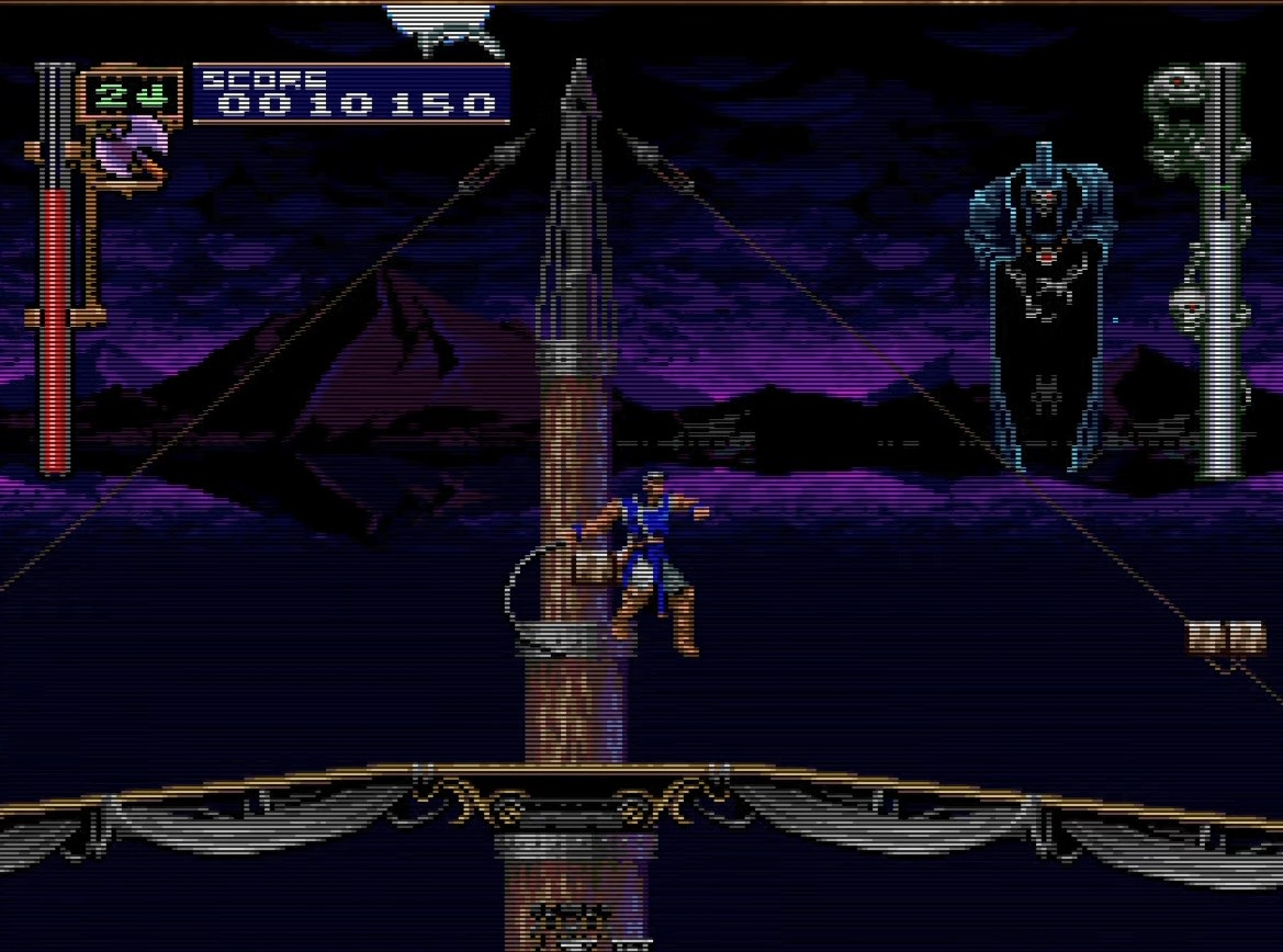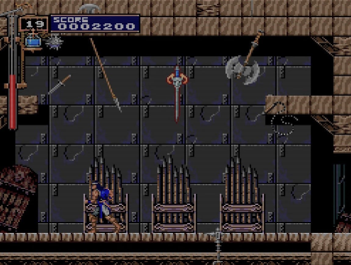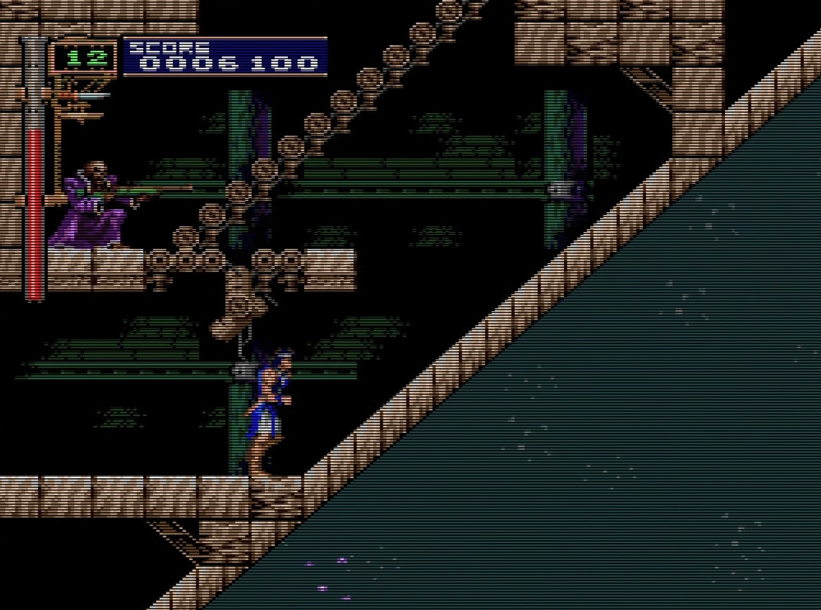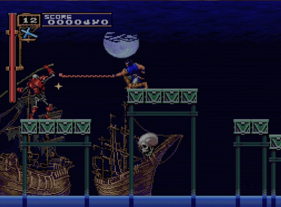 Walk all the way right, to the stern of the ship, immediately to get an axe. You have been deliberately starved of a useful sub-weapon on this stage, and you’ll need the axe more than ever for this segment.