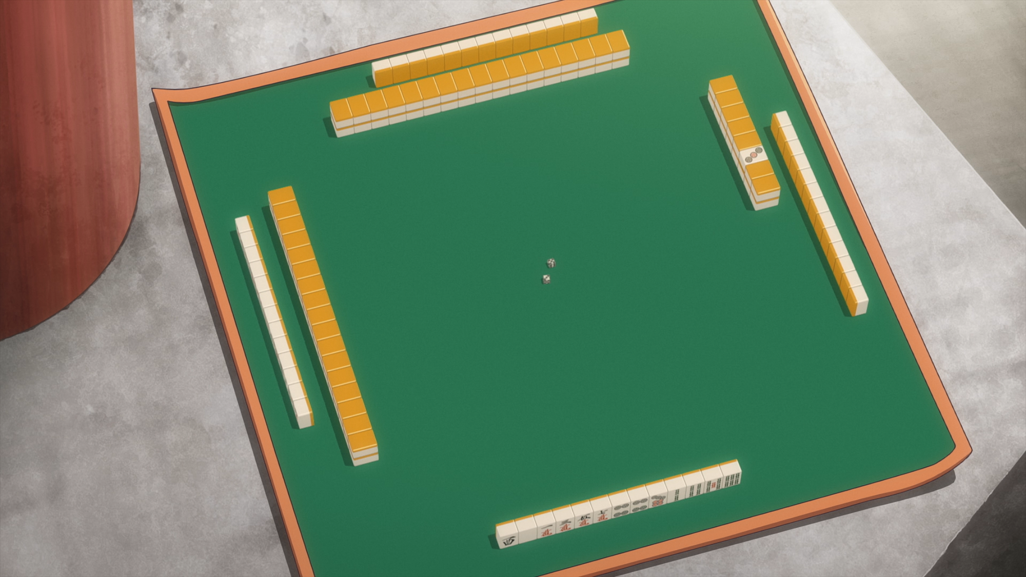At a table we sometimes pick tiles to determine first dealer and sometimes roll a die for it: my group isn’t super picky on this process. After that, first dealer rolls to determine which wall will be broken.