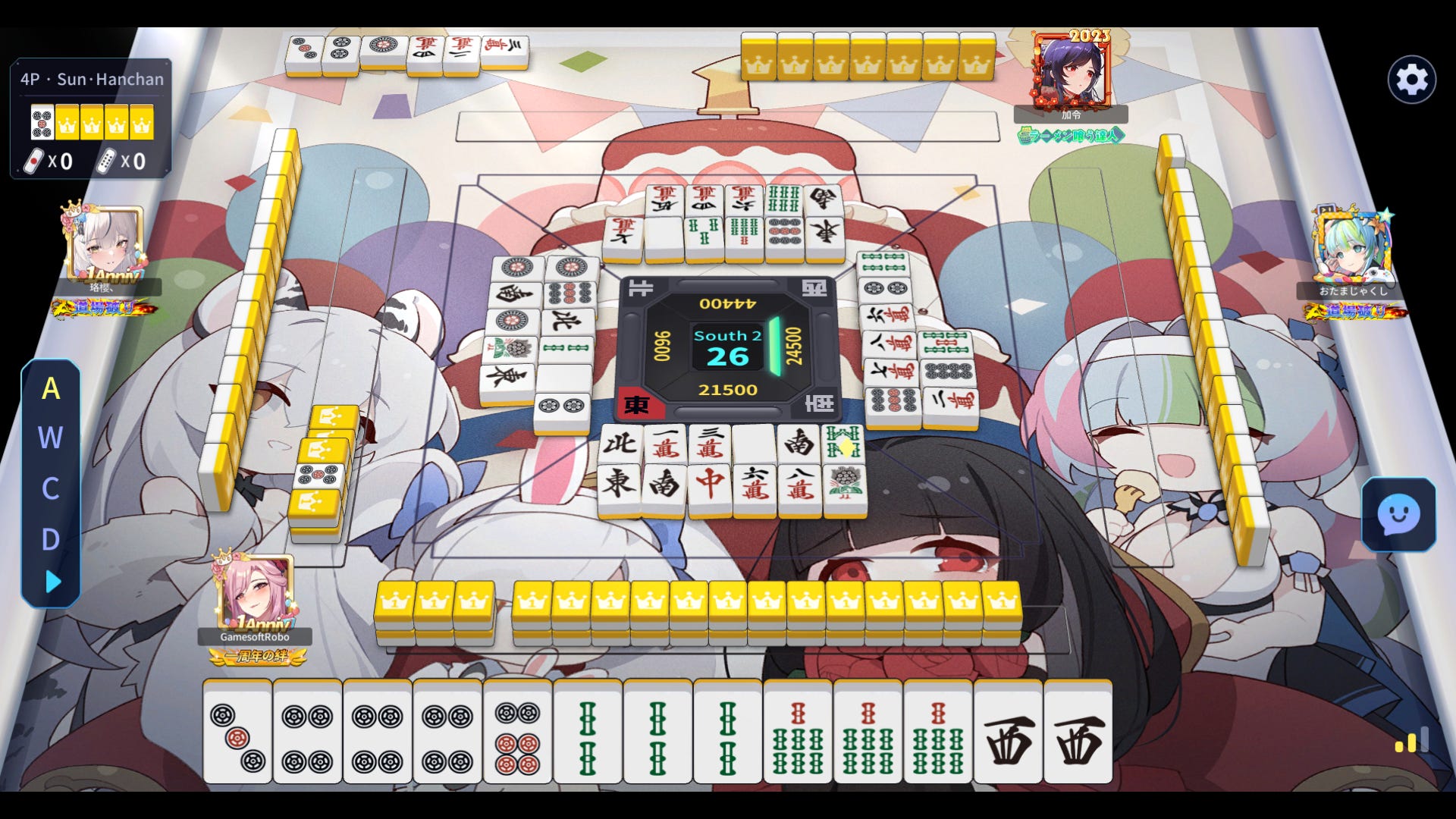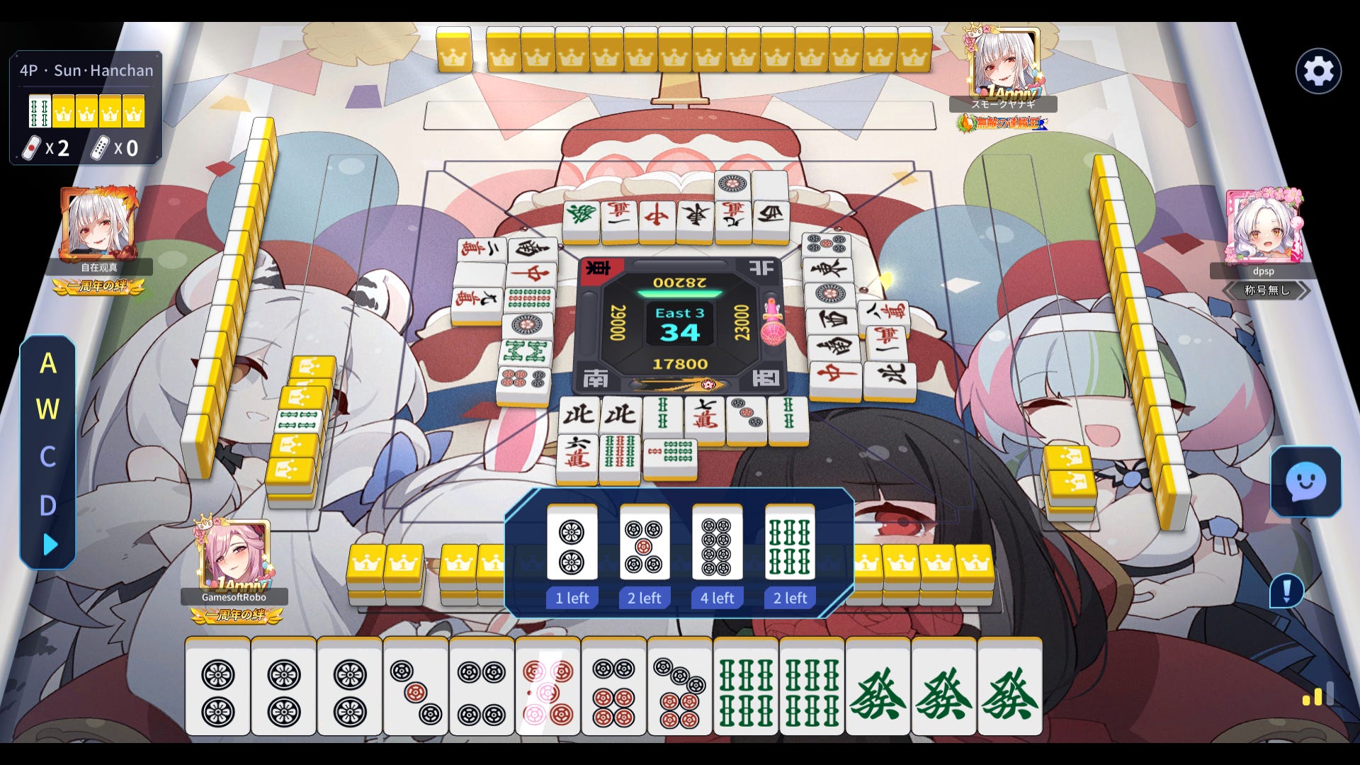 City is in most features a clone of Mahjong Soul, but for ranking it instead uses a typical dan rank system and a granular “R” skill rating more reminscent of the hardcore competitive client Tenhou. (I’m 6th dan, 1900R on City.) It divides players into four lobbies. The beginner lobby, Star, is meant specifically for players in the beginner pre-dan ranks. Once you make first dan— representing as it does a certain degree of basic competence— you’re expected to move up to the general lobby (Moon), but players are allowed to stick around in the beginner lobby until 3rd dan in case they’re not yet sure of their skills… or they’re just raking in easy wins on purpose.