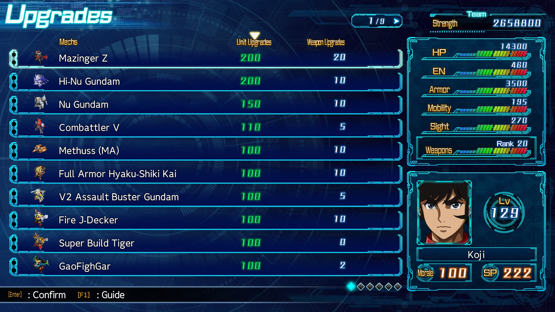 My robot army was never meant to get this strong. The last few SRWs end with the team at level 70: I just got my first pilot to 200. The enemies scale up to their experience level, but my robots outdo them in all kinds of other ways. They just don’t have any kind of chance against a robot that does 30,000 damage every time it hits and can move five times in a turn. Bosses? Do you mean those guys I have to hit three times instead of one?