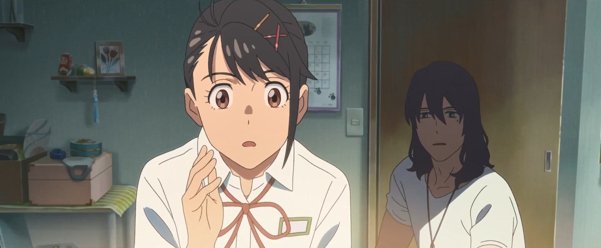 Turning Suzume’s new college-boy crush into mascot furniture has a very important function in the film, one that makes more sense when you realize Shinkai was getting tired of “boy meets girl” and wanted to focus on female relationships: it gets the boy off the screen.