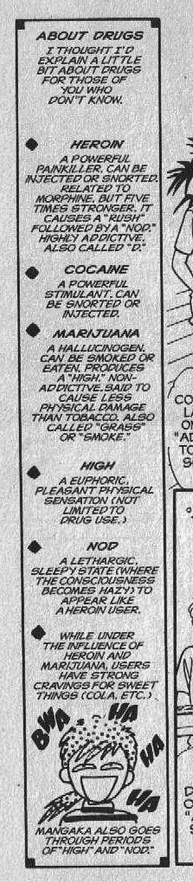 Not a trace of this is left in the anime version; not a single visual calls back to this storyline, and given Cipher The Video's level of attention to detail, I can’t help but think that this omission has something to do with Japanese society’s extreme aversion to drug use. Meanwhile in the manga, where adults aren’t looking, Narita is getting away with putting a beginner’s guide to recreational drugs in the sidebar. But the drug storyline is a major part of this story and of Jake’s baggage: this wouldn’t be complete without an explanation.