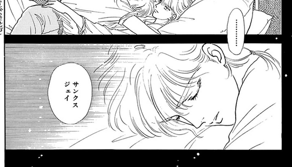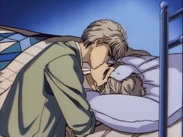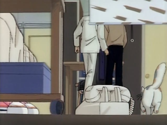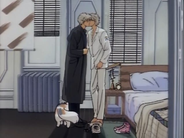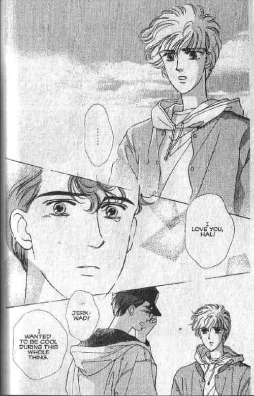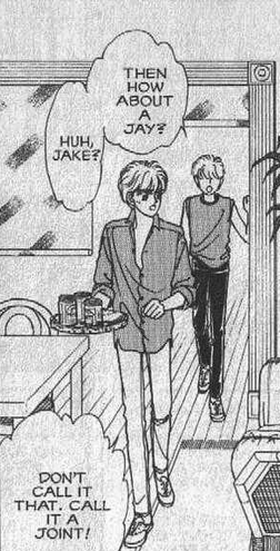 And the very important line “Good morning, Jay”. Jay was the real name of the voice actor playing both twins: yes, he’s talking to himself. But the character’s name is “Jake”, and Jay clearly says “Jay”. Narita notes in the manga that she was (mistakenly) thrilled that the voice actor had the same name as the character. Was the author confused on the name of her own character?