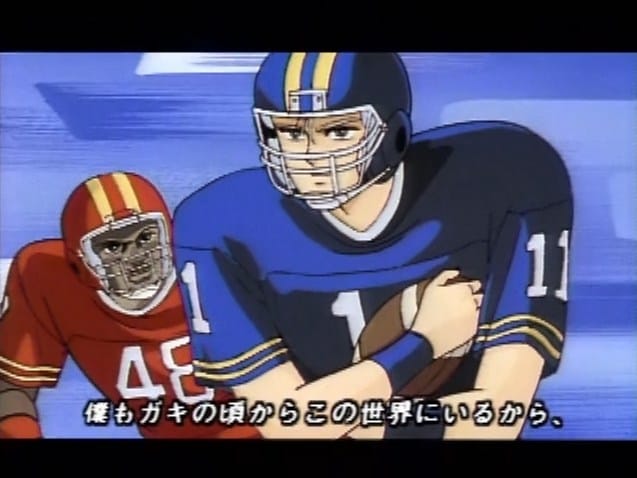 There’s an arc in the manga where the boys go to LA to film a movie. Once again Cipher the Video goes all the way in on a background detail and presents a full making-of, along with a trailer, of the fake high school football movie that Cipher (as “Siva”) stars in. This is all original to the anime. Putting the manga Cipher aside entirely, this is my favorite part of the entire short. The Eizin Suzuki blue skies, the pitch-perfect imitation of 80s teen flicks, and especially the sage old dudes, who I was surprised to find did not appear in the manga.