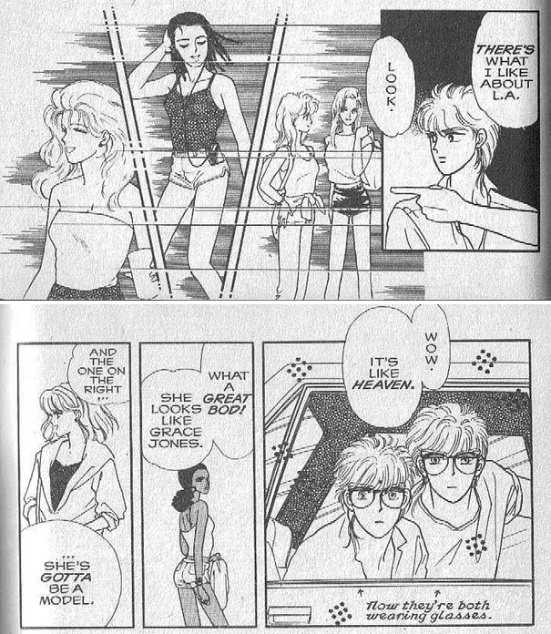 On their escape the boys check out local LA hotties from their car: this is adapted from a scene in the manga and the girls are the exact same girls, down to their poses, as appear there.