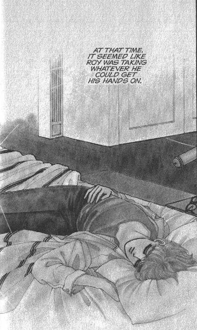 Anise’s home-made blankets return in the bed shots throughout. Scenes throughout the music video where Roy has a towel on his forehead are from a bit in the manga where he gets sick and Jake becomes especially possessive. He's likely flashing back to an event in their past I’m about to mention.