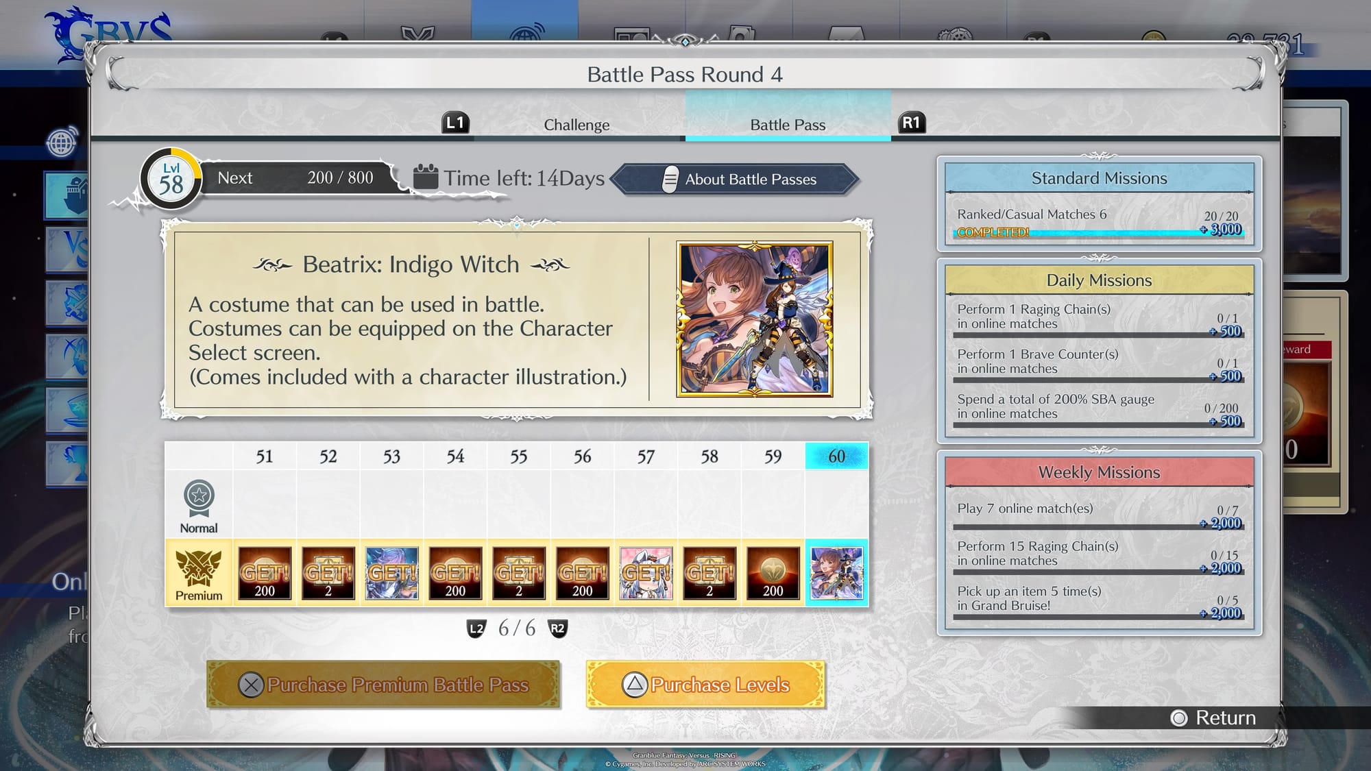 The grind for the Granblue battle pass is reasonable; the only way you can get points for it is to complete missions, which are basic in-game tasks that you will naturally complete by playing matches in the game. Things like “Hit with basic attack A”, that any player can and will do.