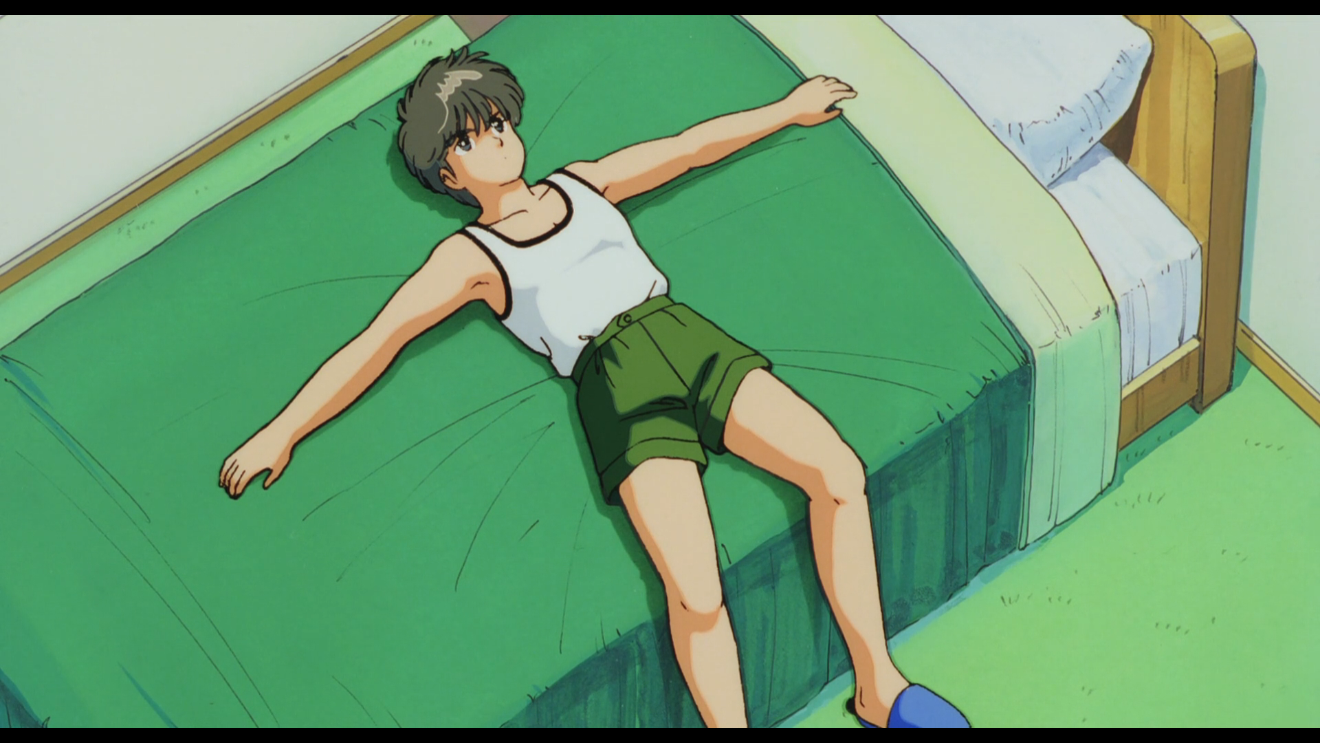 I came to the Kimagure Orange Road movie as part of an ongoing discussion between myself and other otaku friends who are likely reading this. Drawn in by the virtuosic opening sequences and Akemi Takada’s drawings of the heroine, I watched about 13 episodes of the TV series before giving up and complaining to a friend. The animation and direction (Osamu Kobayashi being stylish) were top-notch, to be sure, but my god, these characters! This utter two-timing loser, and this narrative that moves the universe to make him innocently fall into it without it being his fault! Everything I hate about shonen romance!