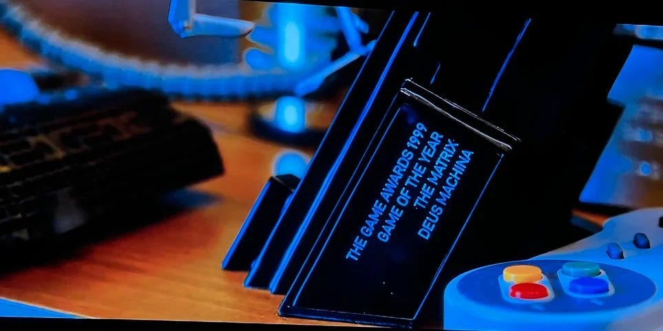 Neo’s game development office exists in our world, 2021. Nobody wants to take any risks on anything new— Neo’s “new” game appears to be in development hell— and there’s this deep well of IP yet to be exploited or re-exploited. So the developer gets trapped working on a soulless, aimless, inevitable nothing that will nevertheless definitely sell at least X-million copies. (If you have a PS5 or Xbox Series X, I recommend the “The Matrix Awakens” tech demo for another angle on this part of the film.)