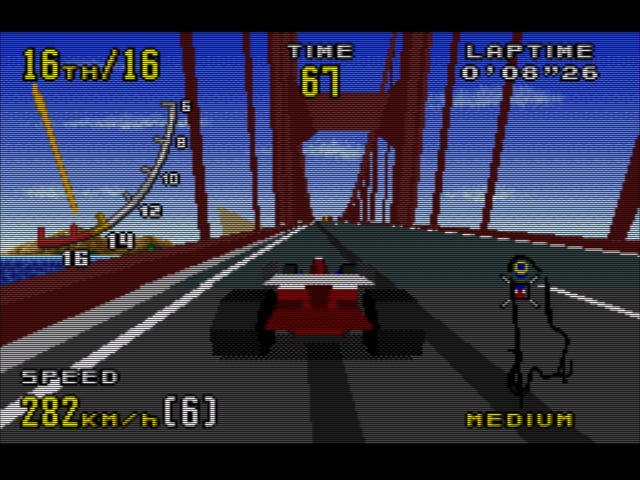 There’s also a selection of historically notable ports that push the Mega Drive’s limits with varying results, like Virtua Racing, Starblade, and Night Striker. It’s impressive just to see these games running in any form on a console released in 1988: Virtua Racing runs much more smoothly than SuperFX games like Starfox or Stunt Race FX6. That port of Night Striker, on the other hand, is an unintelligible mess.