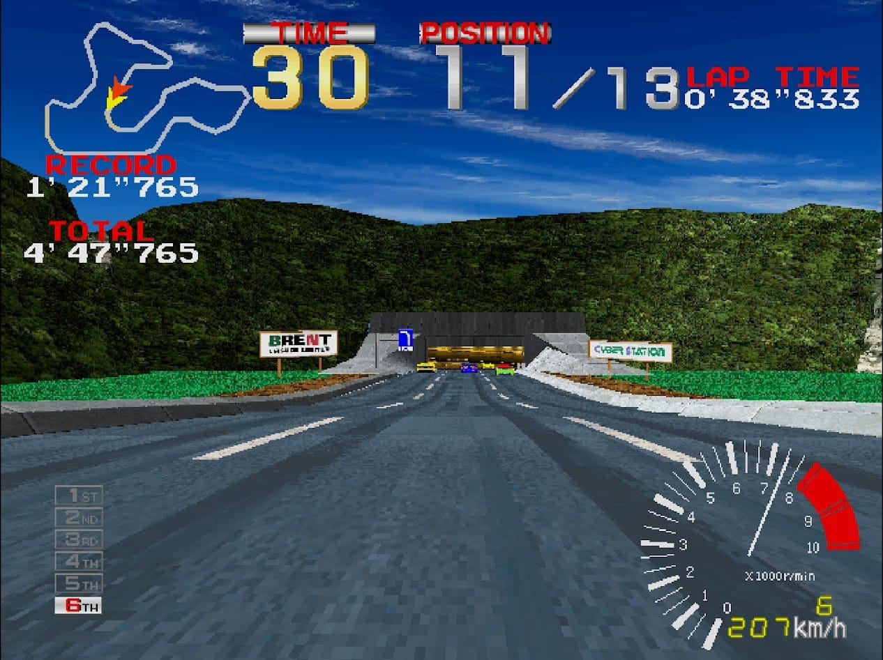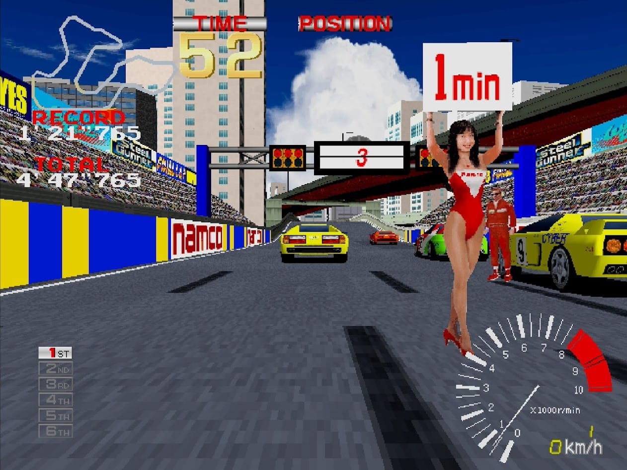 And the moment that strikes me, replaying the original Ridge Racer, is when your car hits a speed bump on the road and jumps.