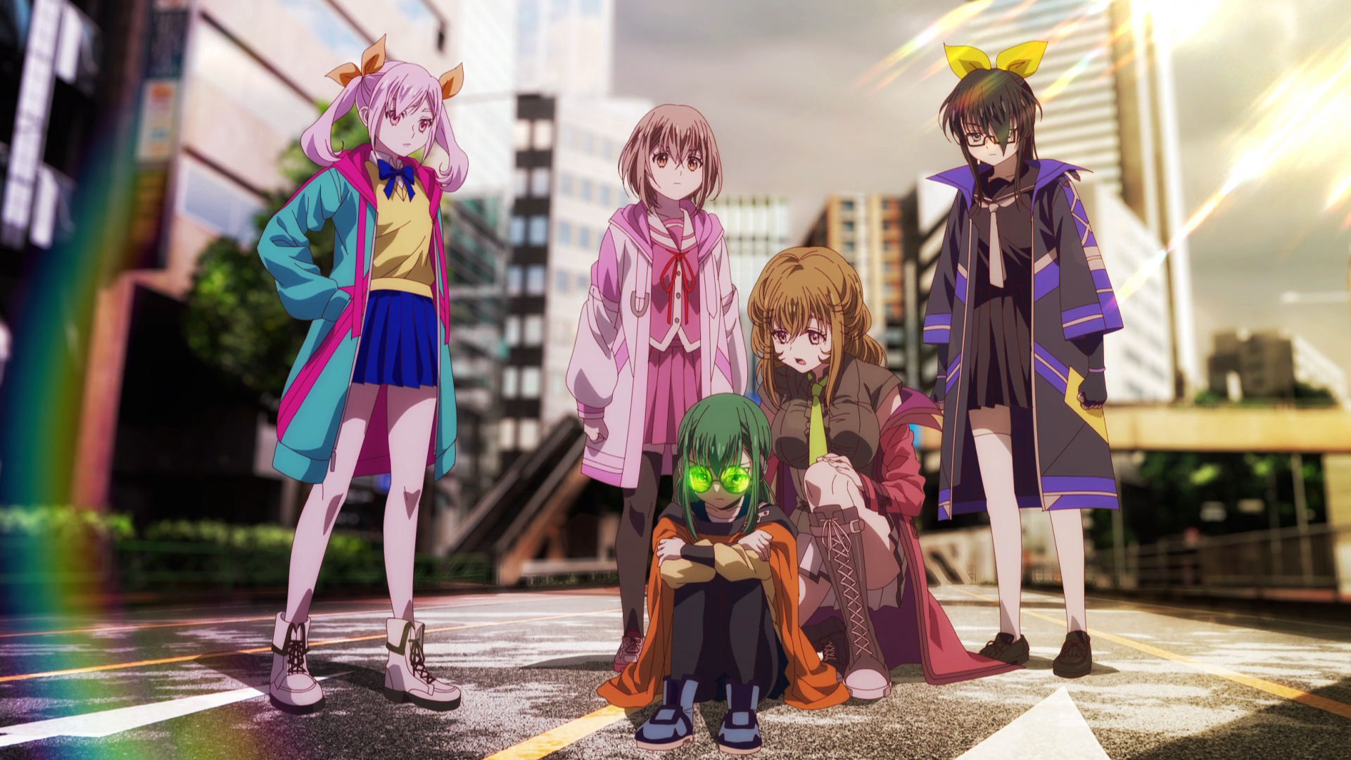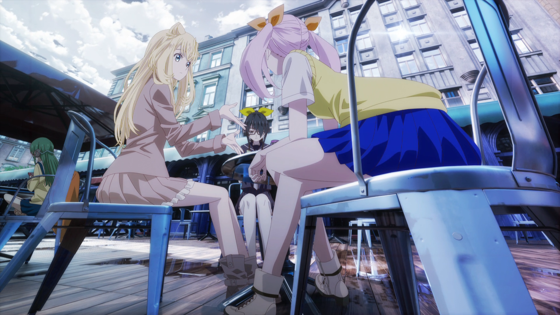 In a post-apocalyptic Japanese city, video game-like monsters (in one of the series’ first “oh, fuck you” moments, the girls call them the Wild Hunt, cribbed from The Witcher) have exterminated most humans. They’re supposed to erase people from existence, but sometimes they mutilate them or reduce them to bloody messes; the show goes with whatever is more shocking at that moment. The only people we know are left are a team of young girls who wander the barren city together, surviving on instant noodles and dispatching Wild Hunt with magical weapons and typical anime superhuman strength, their cool long coats flapping in the wind as they run on the sides of buildings and stuff as a matter of course. In the first episode, these girls link up with a cooking-obsessed amnesiac who can’t bear to see them eating so badly, and the gang is on its way.