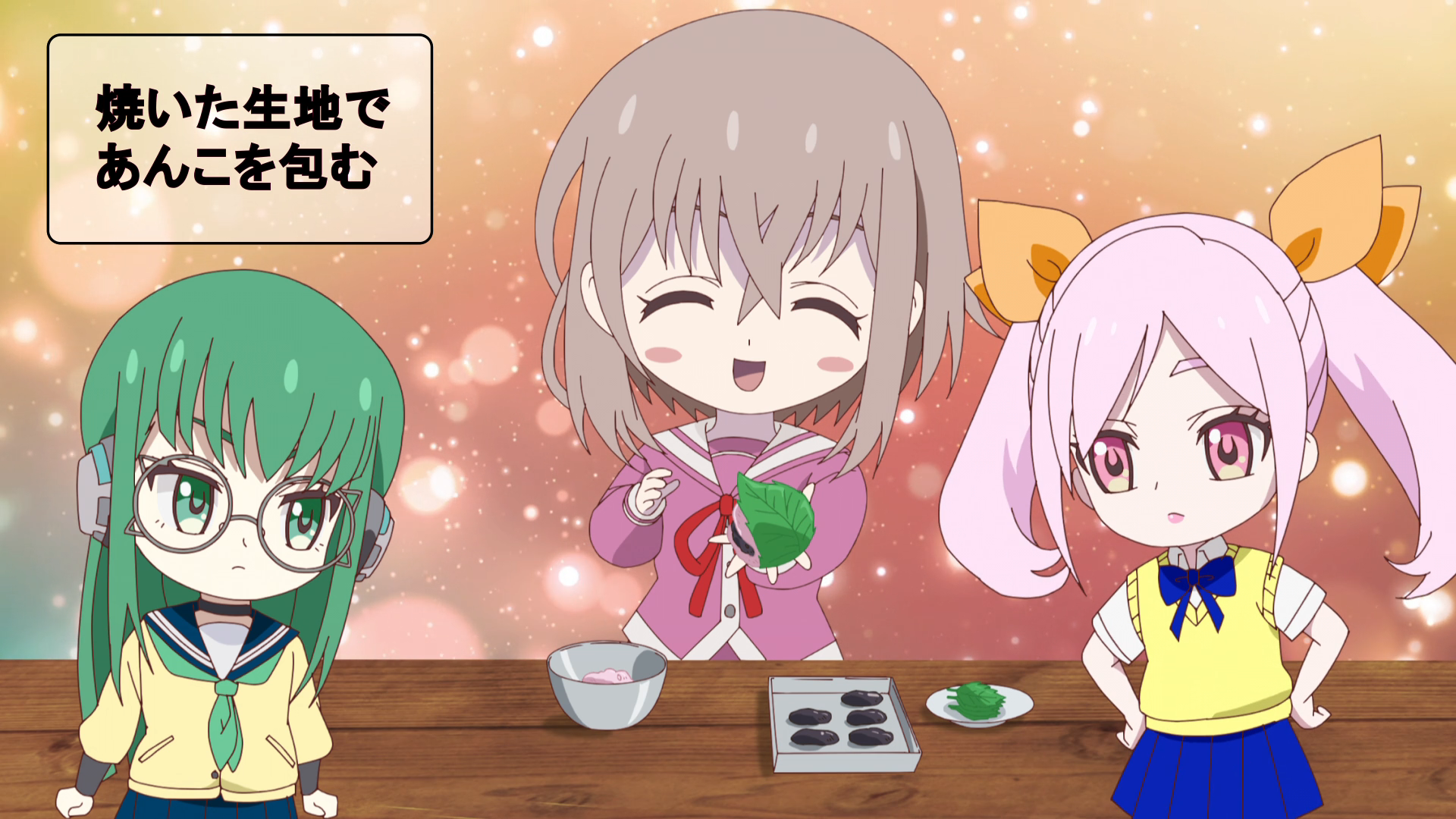 The resulting dialogue between these characters feels extremely unnatural, like a conversation between robots programmed only to spout catchphrases like Pokemon babbling out their own names at one another. You could write actual Momentary Lily dialogue— you could probably reproduce an episode script— by just stringing together those catchphrases over and over again. Guilty! Kappou? Big sis says you should cook when you’re hungry! Whoa, really? Food is maji yabai! Kappou! Guilty. Yabai. …I need a buff.