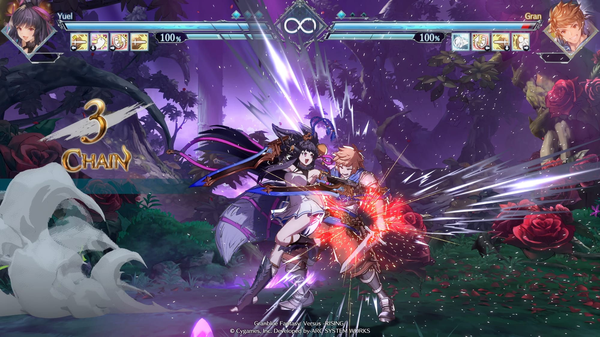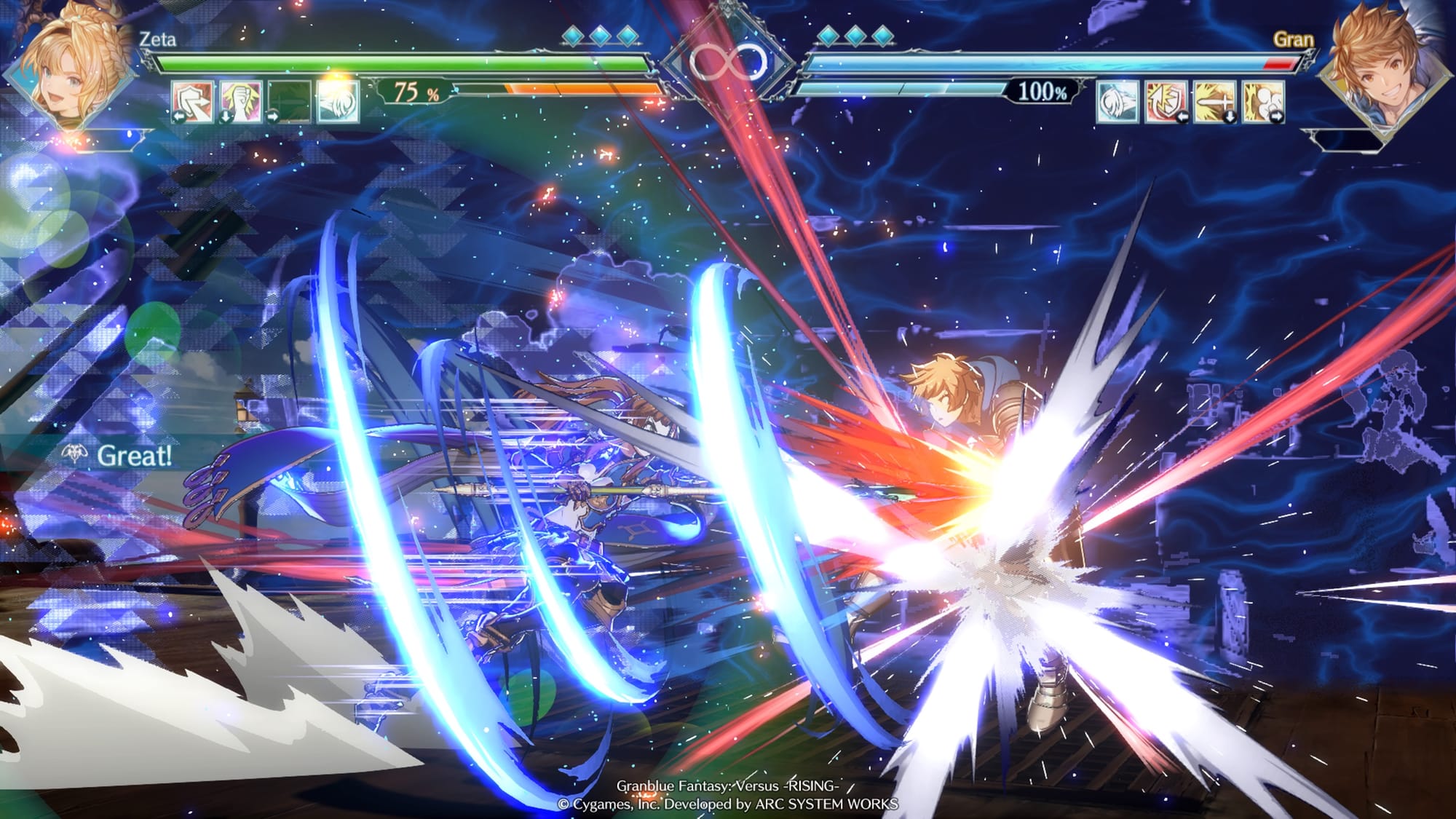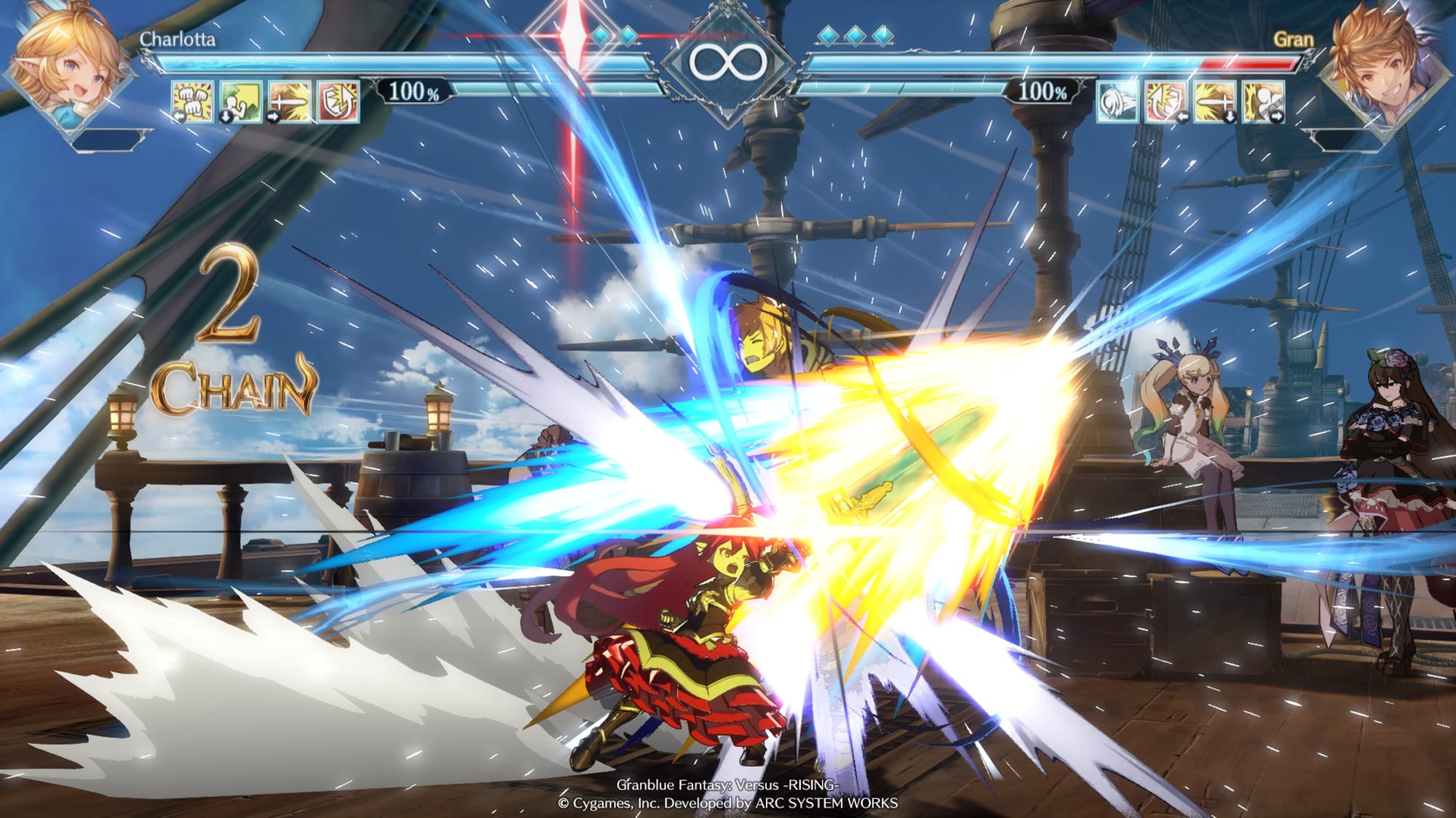 I’ve had to unlearn the way I used to play Granblue Fantasy Versus in the sequel, Rising. GBVS was a fusion of a classical Street Fighter style— walk back and forth, poke at each other with sticks— and easy, flashy combos like those you’d see in an “anime” style game such as Guilty Gear or Blazblue, but with very little of the learning curve.