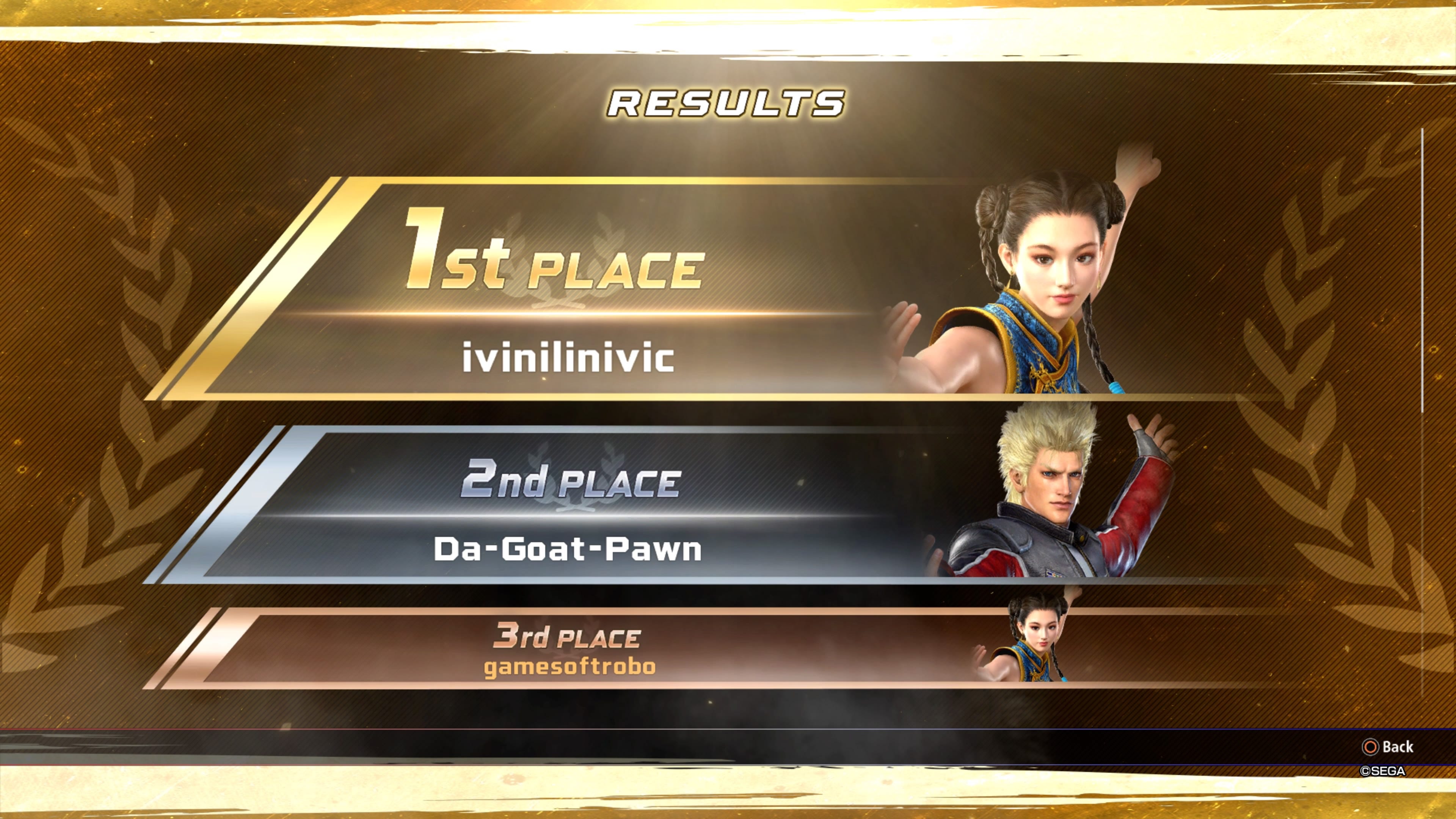 But I suspect something else helped; something that was added while I was away. In the spirit of its Japanese title (Virtua Fighter 5: eSports), this game has a fully-featured double-elimination tournament mode for 16 players. This isn’t new by itself— several other titles have this functionality— but VF5’s implementation is very smart.
