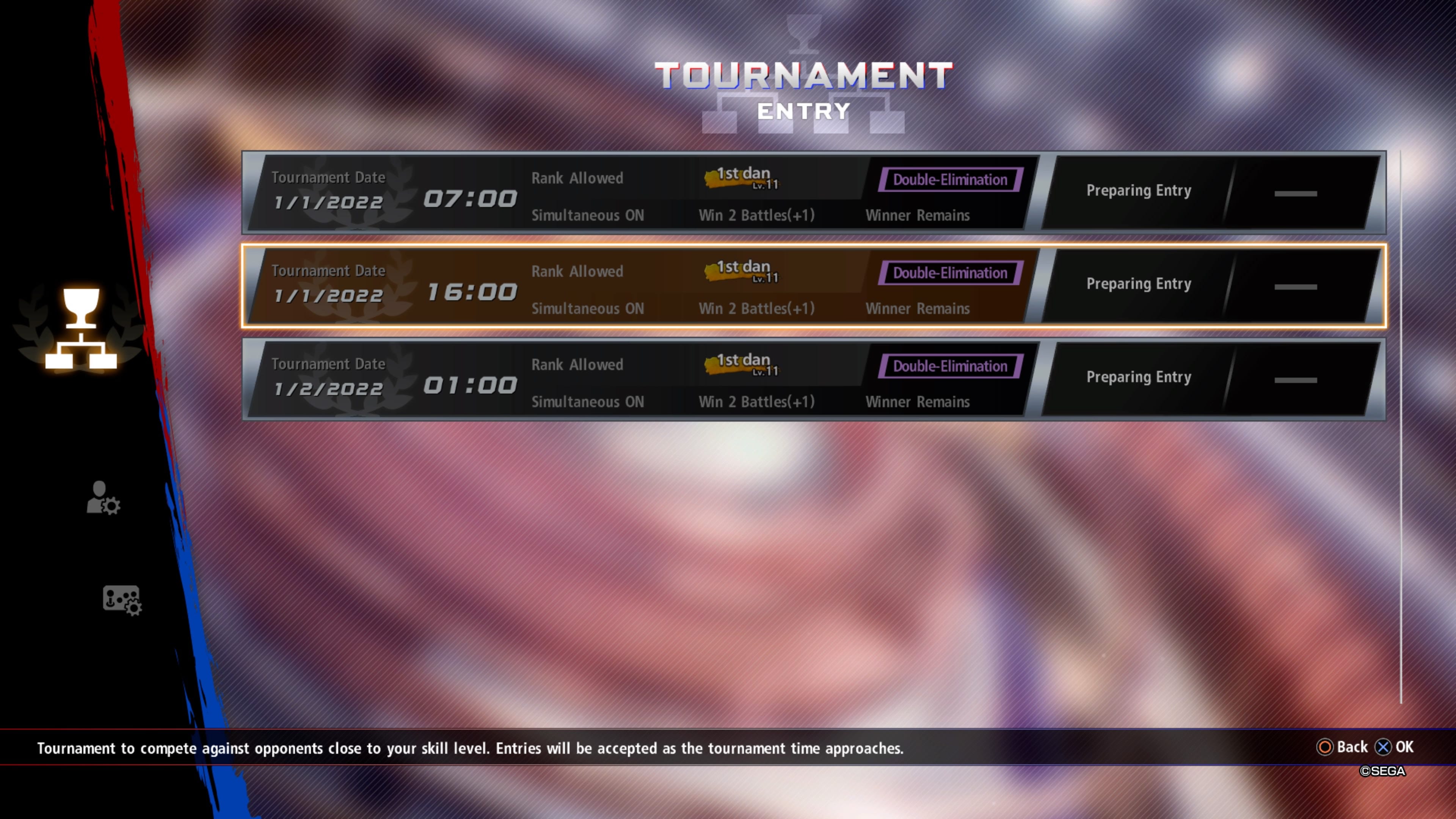 Ultimate Showdown has thought things out a little more. Its tournaments take place on specific days at specific times (Saturdays, with tourneys at three different times to accommodate international time zones.) This seems limited, but it has a very important purpose: getting lots of players together at the same time.