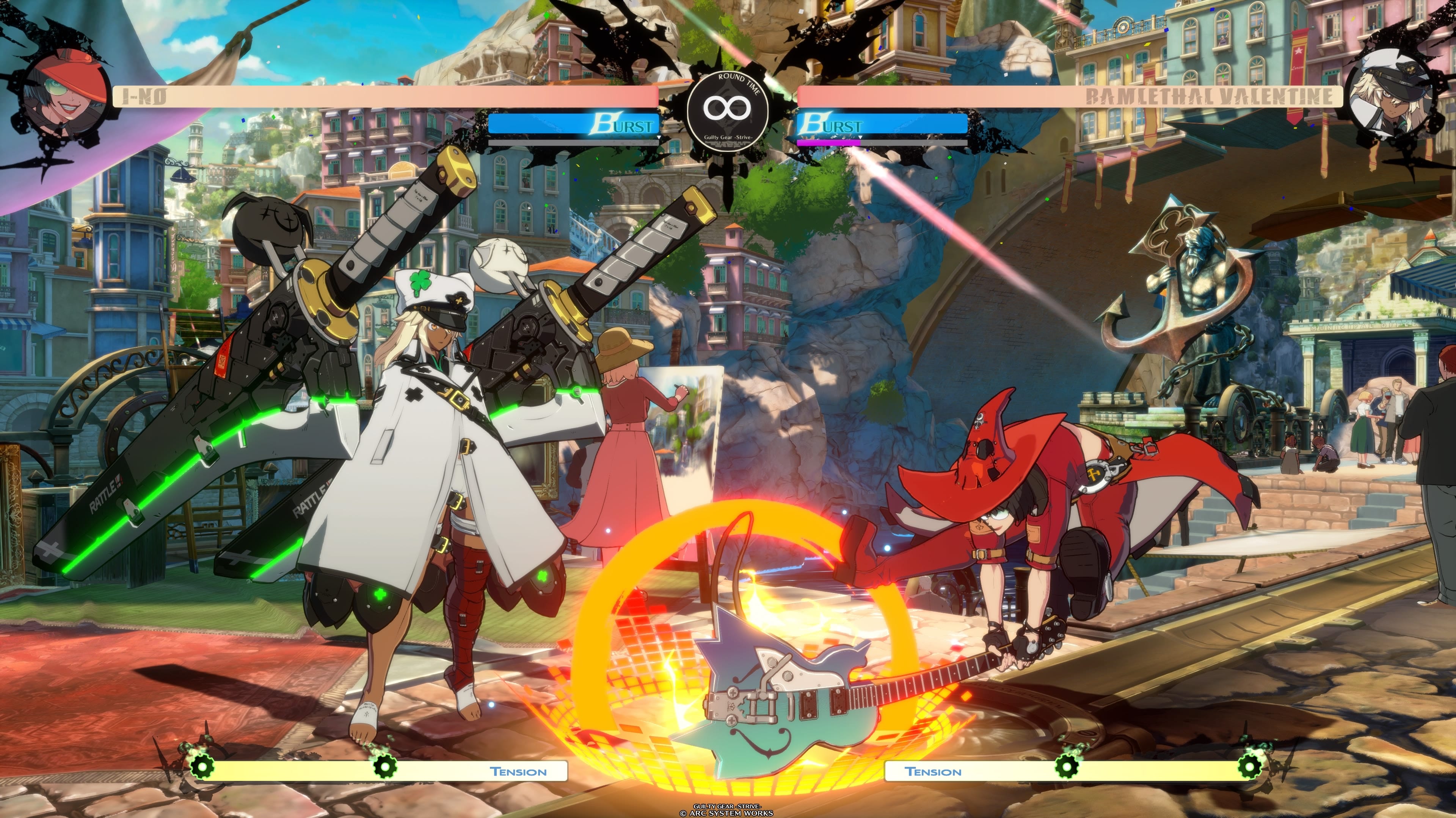 Guilty Gear is Arc’s flagship title, the fighting game for people who already love fighting games. Its aesthetic is heavy metal meets Shonen Jump. Its gameplay is unapologetically advanced, with high speed, a large degree of player freedom, and thus a steep learning curve. GG players love the game because of these elements, not despite them, so it’s particularly unsuited to the simplification trend of modern fighting games.